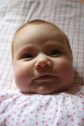 Inzwischen ist Emilia ca. 4,5 Monate alt, wiegt einige Kilos mehr, ca. 7, was man ihr auch ansehen kann. Sie kann inzwischen gleichzeitig den Kopf heben, am Daumen nuggeln und Krabbelversuche unternehmen, wobei alles gleichzeitig noch nicht so guuut gelingt. Da das Krabbeln noch nicht klappt, rollt sie sich schon gerne von einer Seite zur anderen. Nach getaner Arbeit und großer Aufregung, falls etwas nicht gelingt, schläft sie auch gerne und vor allem, zur großen Freude ihrer Eltern, durch!